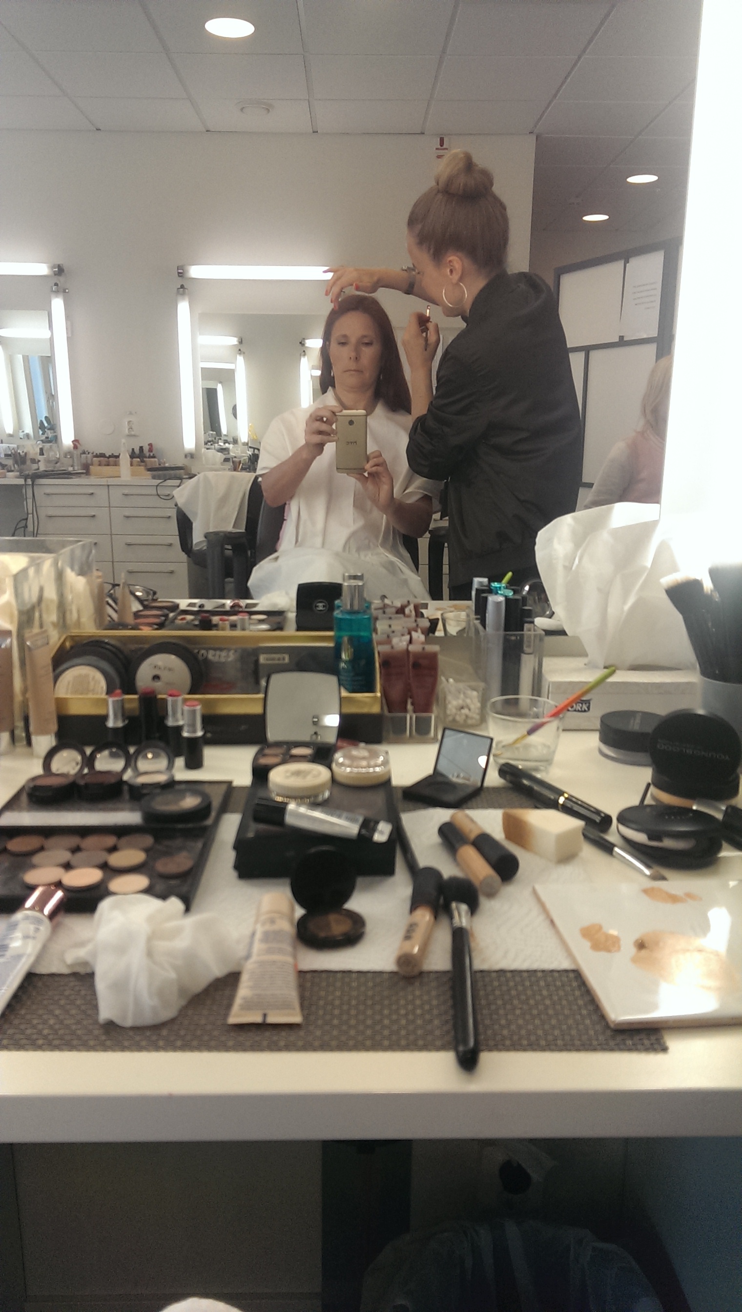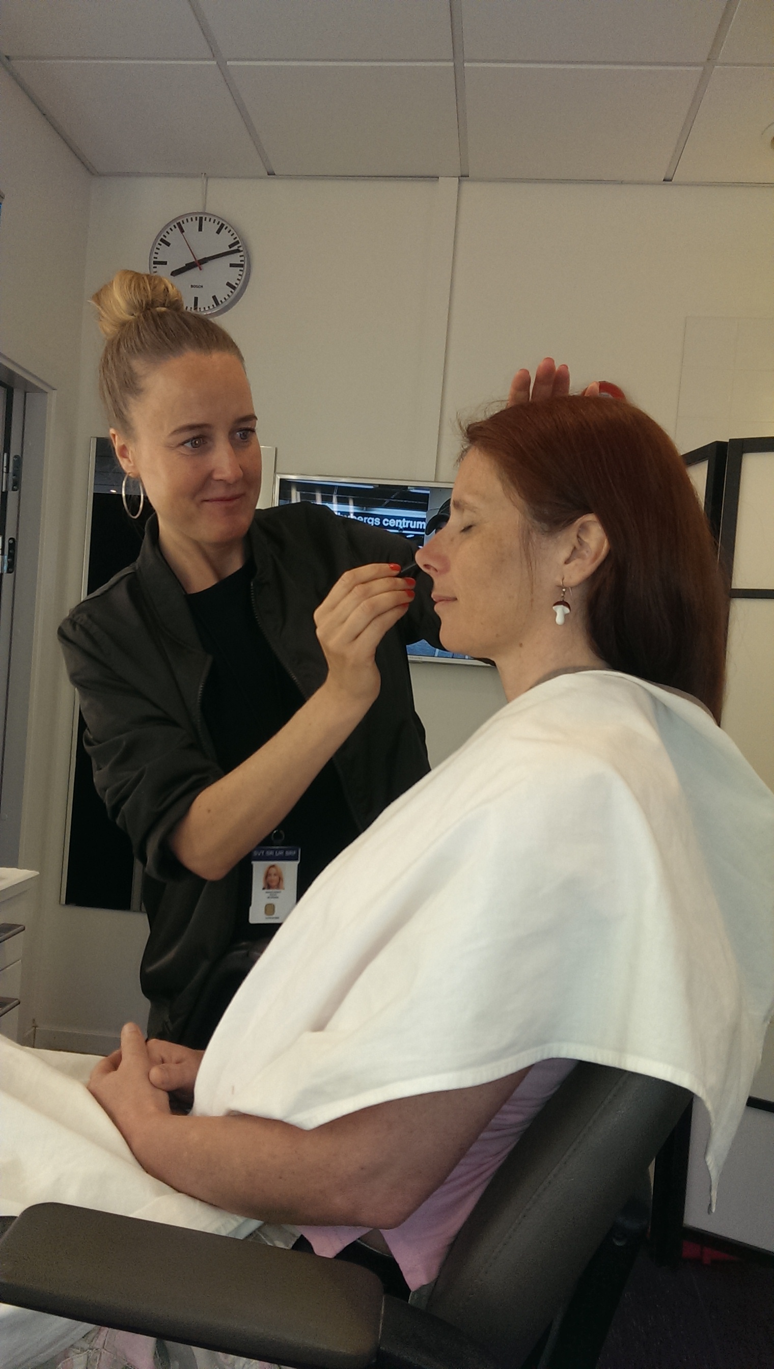 Vid det laget fanns det ingen återvändo längre men händerna skakade och jag mådde riktigt illa. Inte läge för någon frukost där inte. Jag inser snabbt att jag inte är någon linslus. Men alla var så snälla och så lugna så det kändes skönt. Därefter var det dags för sminket.
